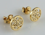 For subtle detail, these elegant gold circle stud earrings offer a demure beauty. With their polished 9ct yellow gold construction, each rounded earring sits flush to the lobe for comfort while boasting an intricate filigree design. Multiple daisy flowers pepper the front in an appreciation of natural beauty, working together to create an earring that pairs well with both office wear and ball gowns.