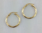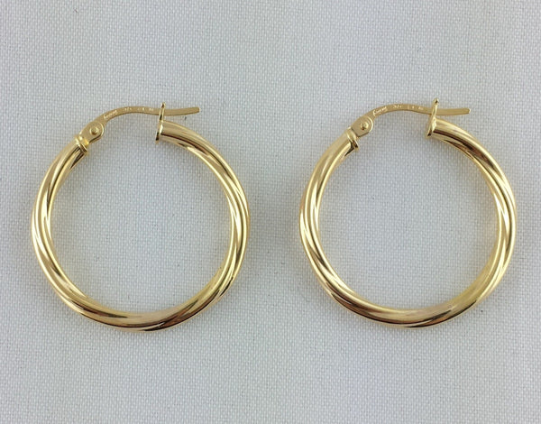 Beautiful 9ct yellow gold twisted hoop earrings.