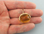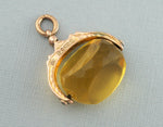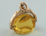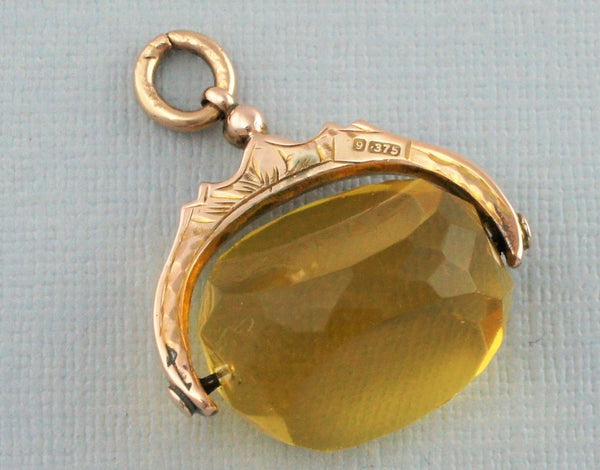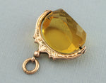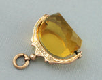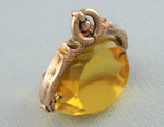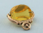 Antique engraved 9ct gold swivel spinner watch fob pendant set with faceted CITRINE COLOURED imitation gemstone.