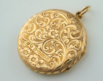 Exceptionally finely engraved antique Edwardian 15ct solid gold circular locket pendant.
