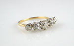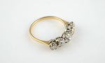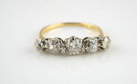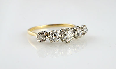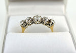 Beautiful antique 18ct yellow gold & platinum ring with 5 old mine cut diamonds.