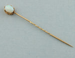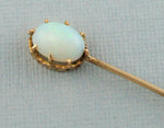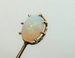 Fine antique solid yellow gold stick/tie pin set with an oval cabochon natural opal.