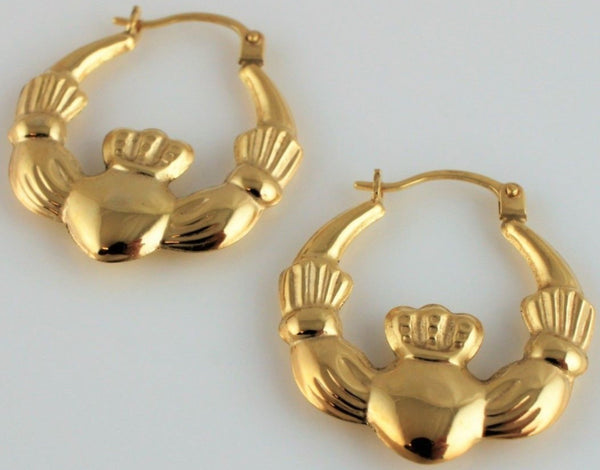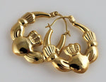 Representing love, loyalty and friendship, these elegant Claddagh creole earrings add subtle detail. With their 9ct yellow gold design, they boast a touch of elegance with the iconic Claddagh design. The latch back fastening ensures a secure and comfortable all day wear that lends itself to any event from a day at the office through to dinner with the in laws.