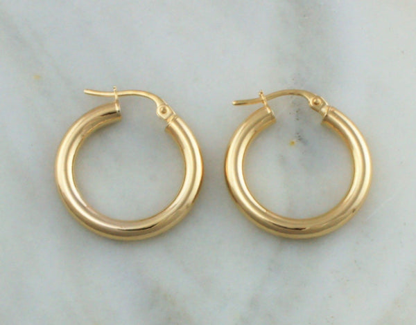 Beautiful 9ct yellow gold round tube hoop earrings.