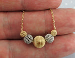 From the everday through to your most cherished of events, this charming graduated ball necklace can be adjusted to fit your collarbone perfectly. Crafted to last, the 9ct white and yellow gold design pairs effortlessly with a wide array of other accessories. Five graduated and textured baubles sit at the front while a secure clasp holds this necklace tightly, with the option to change the length accordingly.