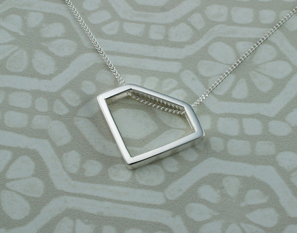 Beautiful 925 sterling silver outline diamond shape pendant necklace.