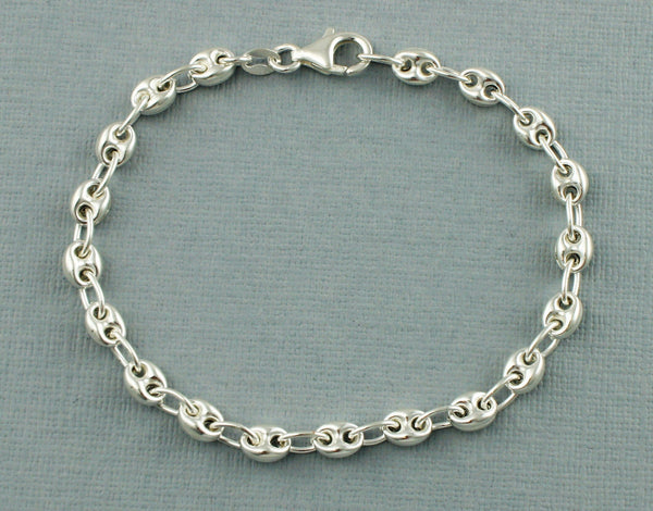 This demure marine anchor chain bracelet slips so easily into your collection, you'll wonder what you did without it. Crafted from polished 925 sterling silver, each individual link takes its style inspiration from the sea and boasts a high shine finish. Working well in all manner of situations, the flexible design curves around your wrist with ease while securely firmly at the back with a secure lobster clasp.