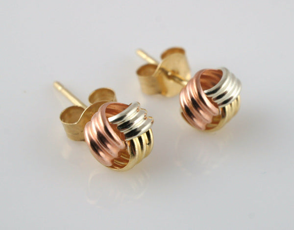 Beautiful 9ct multi-tone gold knot stud earrings.