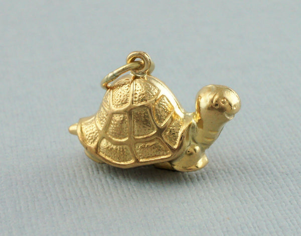 Vintage hollow 9ct yellow gold tortoise pendant or charm